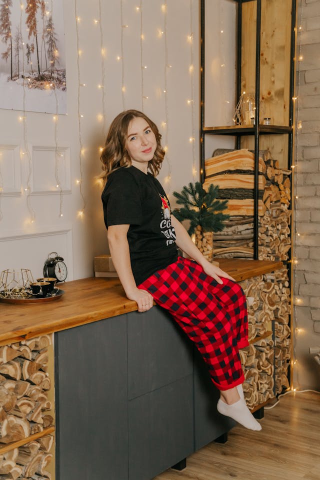Am besten passen Modelle aus Baumwolle, Jersey oder Flanell. Die Hosen dürfen locker geschnitten sein, meist mit einem elastischen Bund, der jede Bewegung mitmacht. Dazu ein luftiges T-Shirt aus dem gleichen Material – angenehm weich und perfekt zum Einkuscheln.